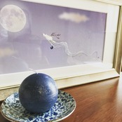 画家 月鐘たえさん作『満月に昇る白龍』とその絵からインスピレーションを受け取って創られた福の神キャンドル『露珠』のコラボセットです。