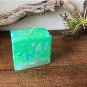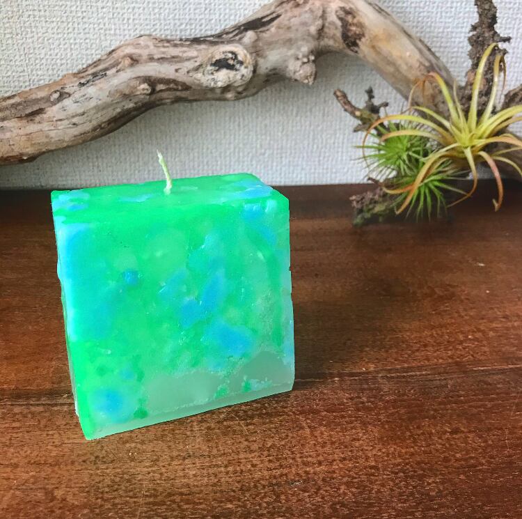 地球みたいな色の角柱キャンドル。