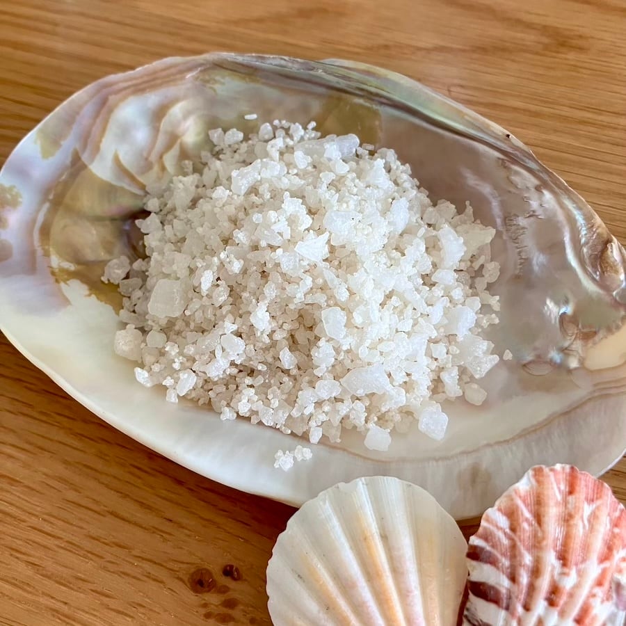 ギリシャの非加熱天日塩と与那国島の化石サンゴで作られた、海の恵みたっぷりなバスソルト。