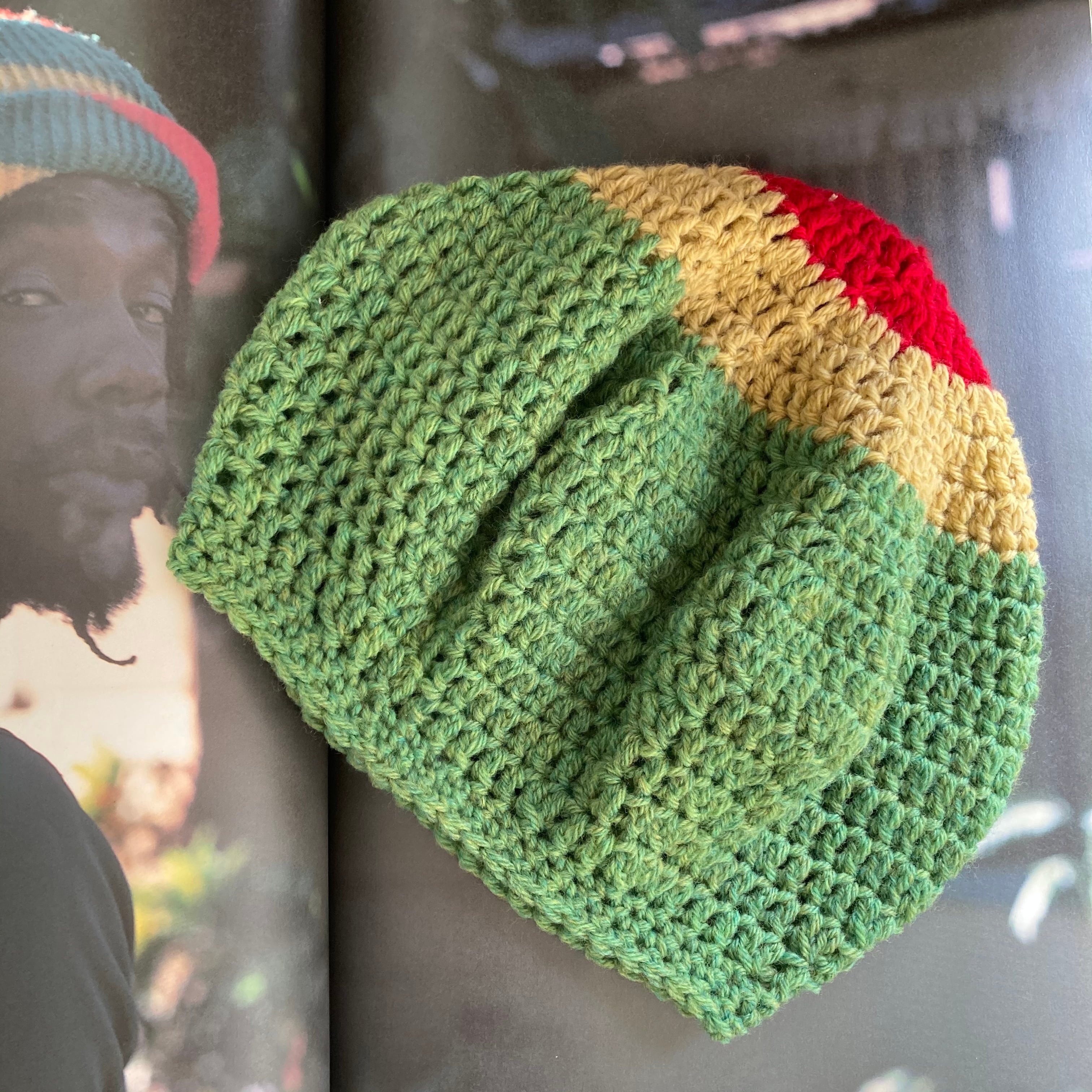 ドレッドロックスやレゲエファッションにぴったりな手編みニット帽です!