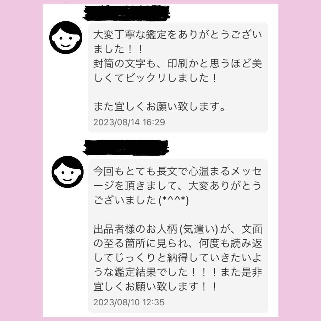 ②3日以内に鑑定書をメールでお送りします。(土日はお休みを頂いておりますので土日を除く3営業日)