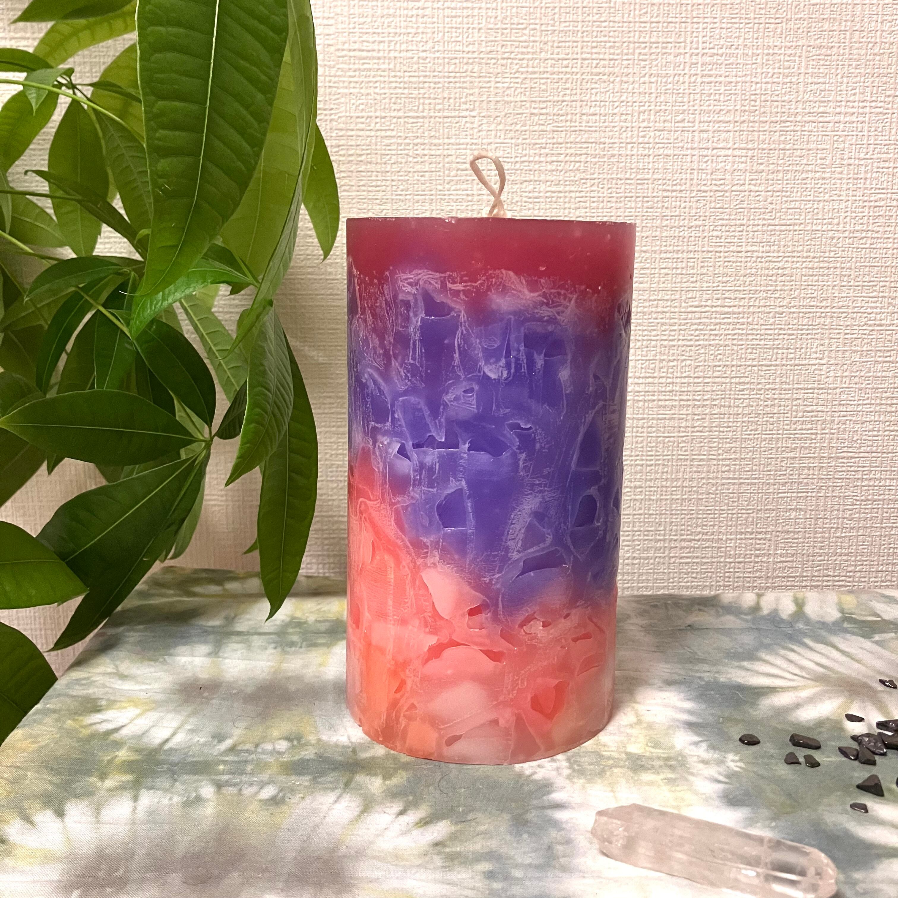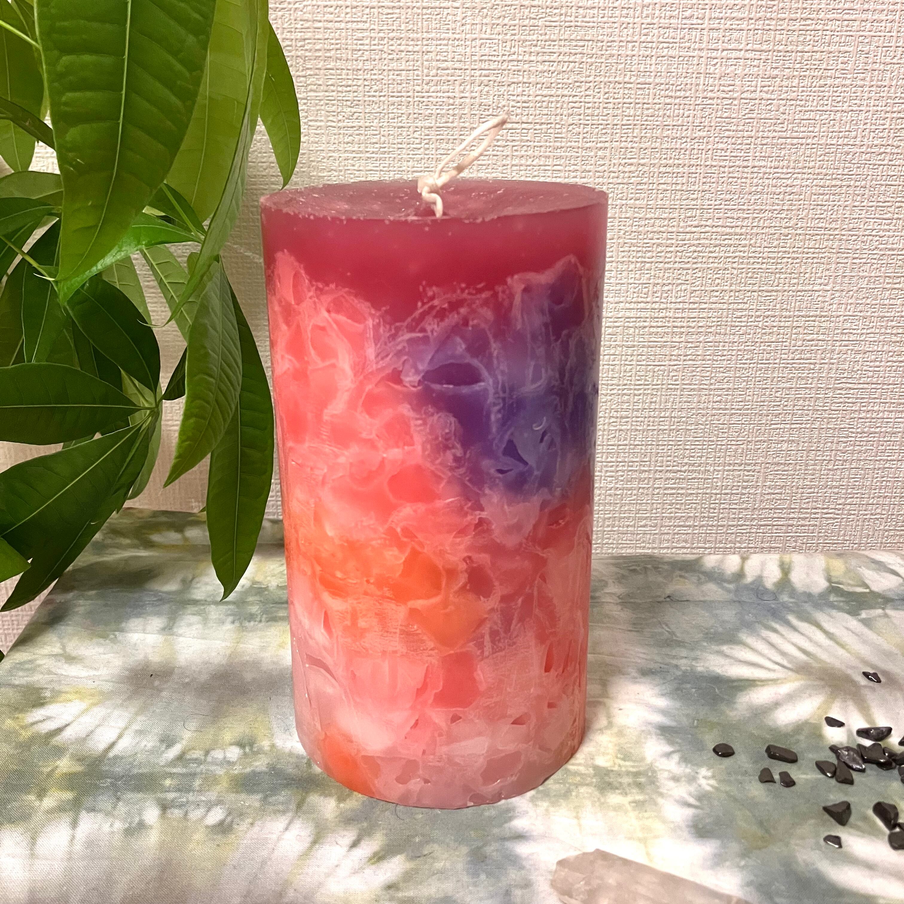 高さ18cmもある存在感ある円柱キャンドルです。美しいデザインで部屋を華やかに演出してくれます。手作りの温かみを感じるキャンドルは、素敵なひとときを演出するのにぴったりです。日々の忙しさを忘れ、リラックスできる空間を作りませんか。