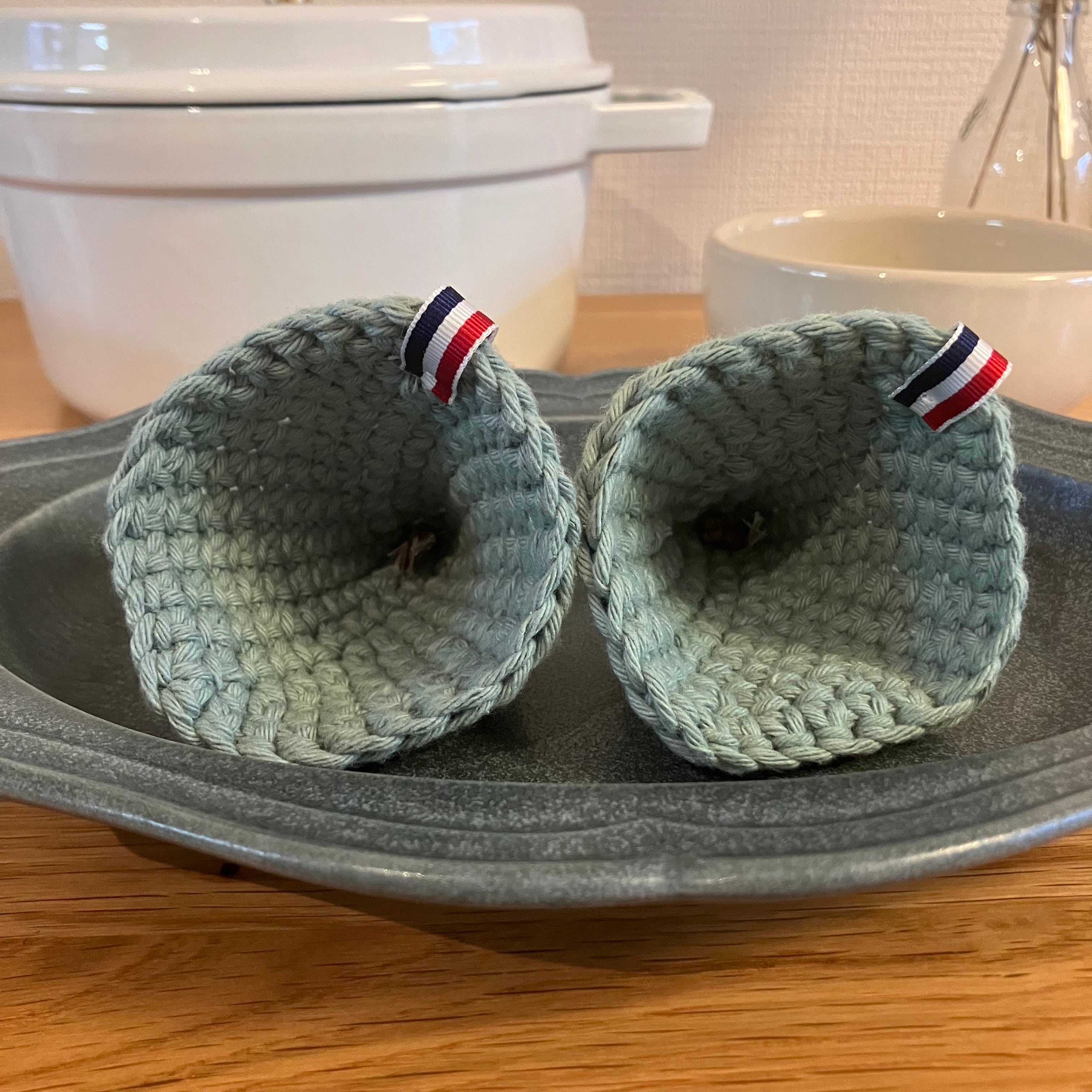 ※写真に写っている鍋、その他小物は撮影用の備品です。お送りするのは鍋つかみ2個セットのみとなります。